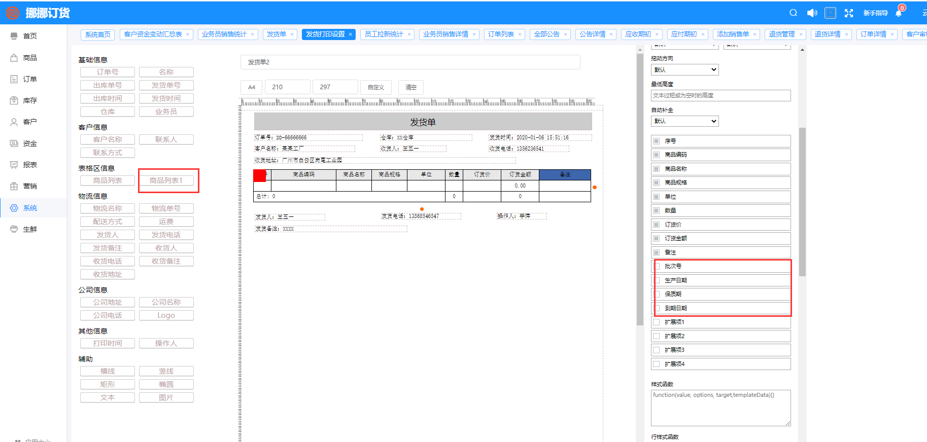 7.發(fā)貨單打印增加顯示批次號(hào),生產(chǎn)日期,保質(zhì)期,到期時(shí)間
