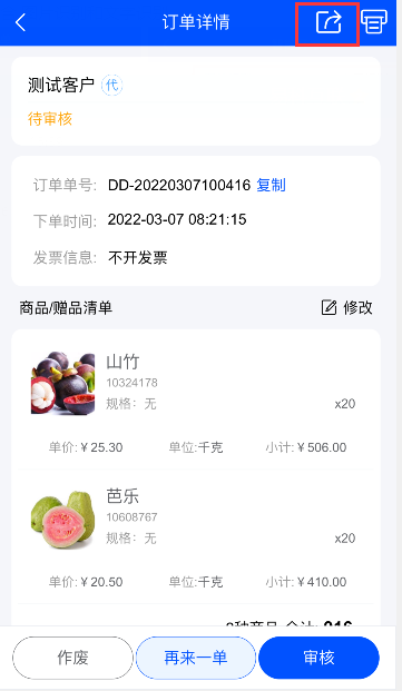 手機(jī)管理端添加銷售單時(shí)可把銷售單保存到草稿箱內(nèi),便于下次繼續(xù)下單;