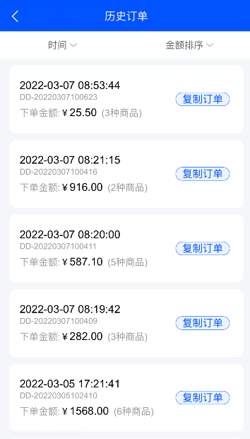 可對(duì)歷史訂單復(fù)制,復(fù)制訂單生成新的銷售單。