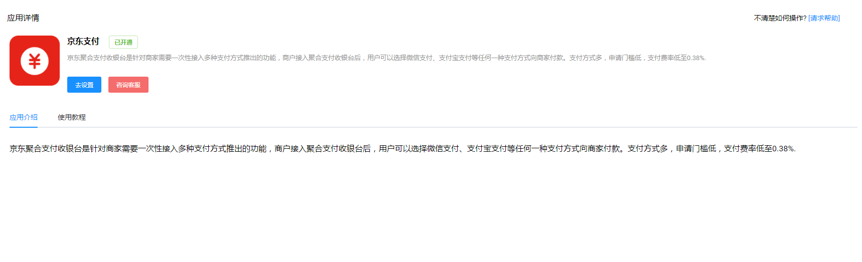 開通京東聚合支付后按照頁面提示進(jìn)行申請,審核通過后即可使用此功能;